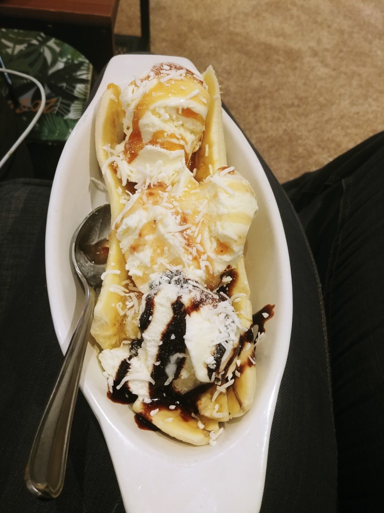 Or, you could make banana splits with random gigantic bags of discount bananas at IGA that were still green and so really….why were they discounted? Meh, whatever, don’t question it. Just enjoy.