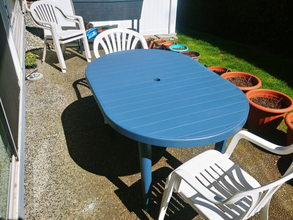 Once the sun made it’s appearance, I got outside for a couple afternoons and painted a patio table that we got from Andrea’s parents. It’s around 25ish years old, so it has seen a fair bit of use and weather. I painted it with a leftover paint sample from Home Depot when we were painting the house. Looks pretty great for $5 and a couple hours work. The paint won’t last forever, but I am really proud of our use of a random paint sample that was sitting in the garage.