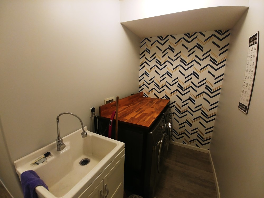 First, when I realized I would have plenty of time on my hands, I realized it would be the perfect time to do more home projects that we had not yet completed. For us, that meant working on the laundry room, which needed paint and then some wallpaper. The wallpaper may have been a moderately stressful evening for Andrea and I, but we worked together and made it through!