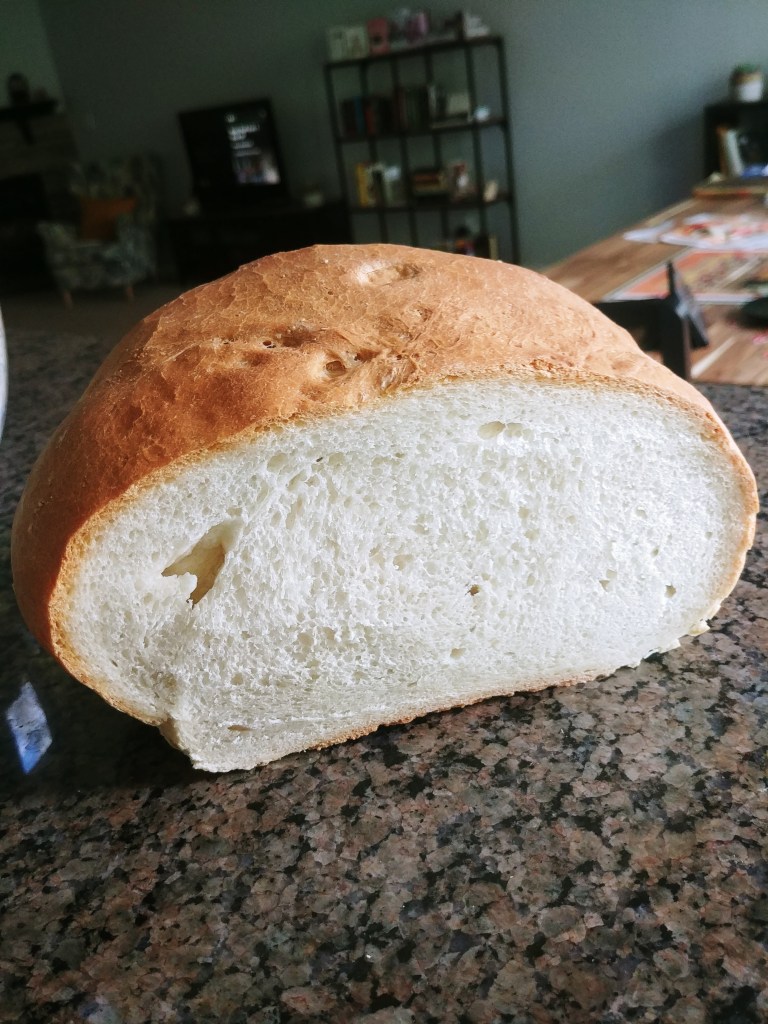 We have been making sure to meal plan so we don’t completely lose track of the days and food we might need to use up, and now that I got my hands on some yeast while I was out for other errands last week, I have also joined the bread baking world for my first loaf. It’s a very simple white freeform loaf. I am happy to report baked up perfectly and tastes great, giving me confidence to keep trying new things!