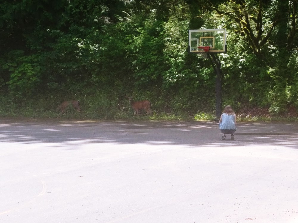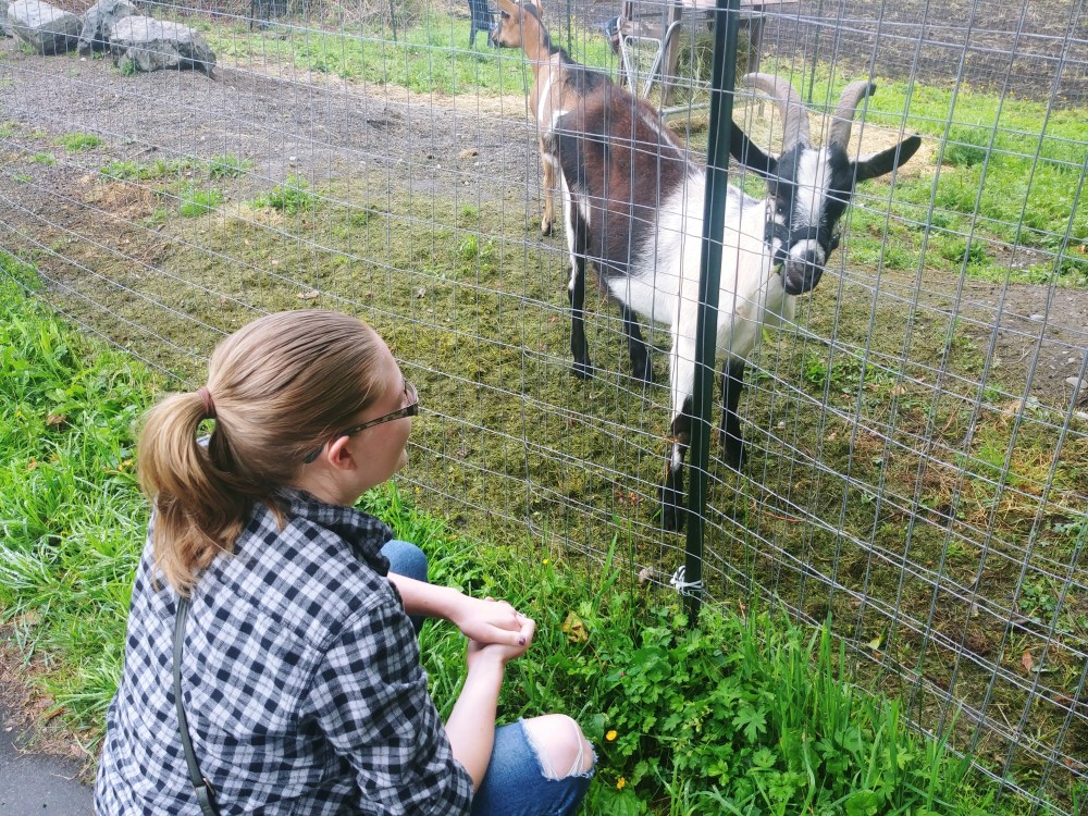 I have also found myself watching my wife interact with animals of various types. The deer really didn’t mind her getting closer and closer. One of them even started walking towards her before calmly heading back into the woods. Almost a Disney princess moment. Also she really loves goats, and gets to see these ones every week when we pick up vegetables from a farm.