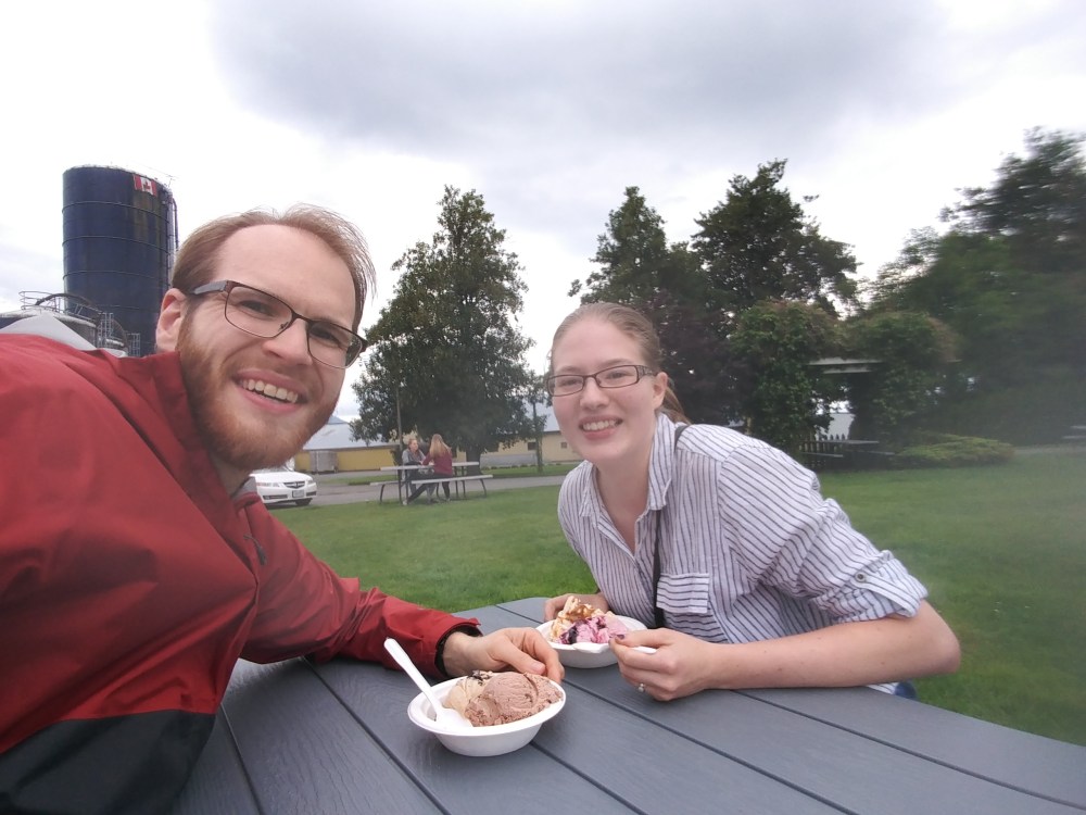 When June ended, we celebrated our month without sweets by going to Birchwood Dairy on a perfect grey day. I say perfect because it wasn’t actually raining, but it was grey enough to keep the crowds away while we ate our delicious ice cream.