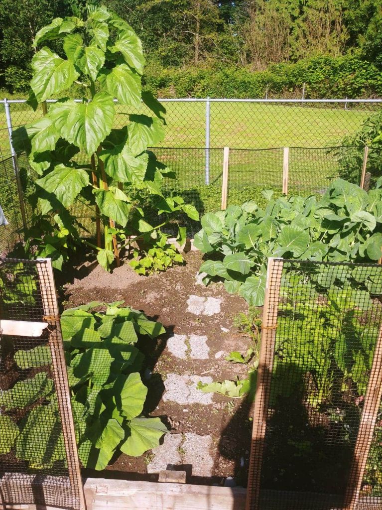 What better way to show the passage of time than to show the incredible growth of our garden. We have harvested plenty of beans, carrots, radishes, beets, and have discovered that the cucumber seed that we planted has been taken over by a rogue Mammoth Russian Sunflower seed that must have been buried in the dirt. It is now about 8-9 feet tall and is most definitely not the cucumber we expected…